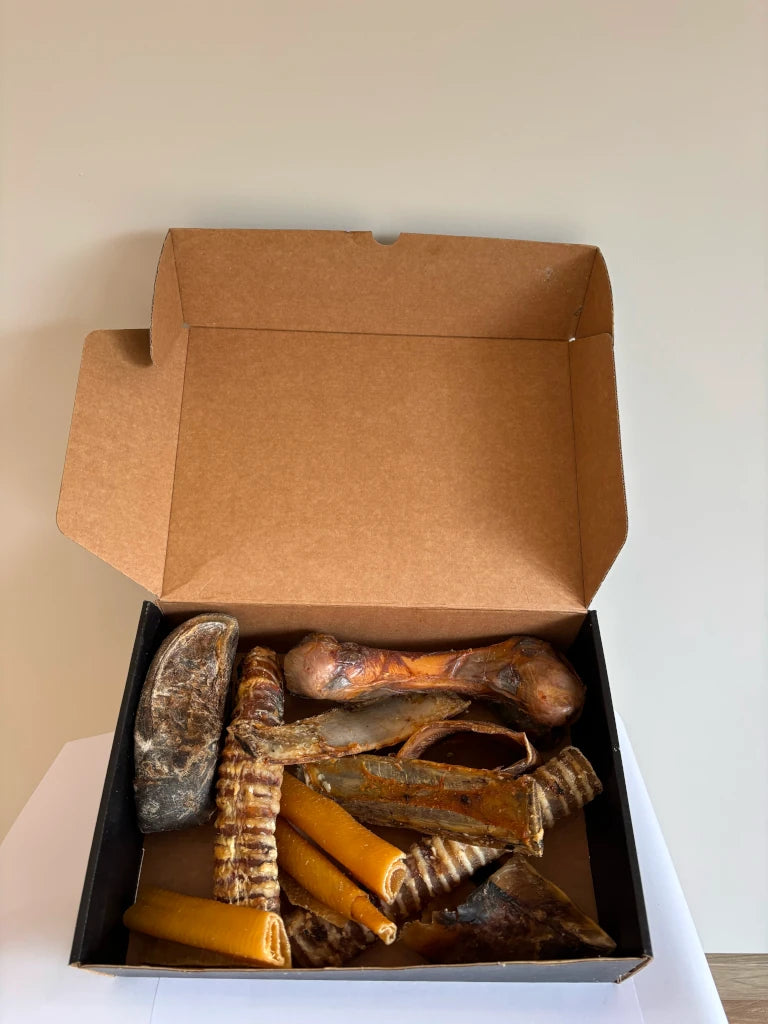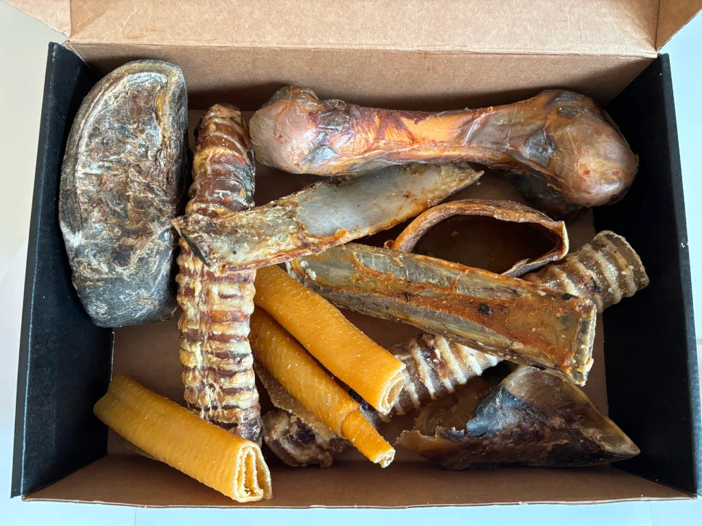 Cuida los dientes de tu perro con los mejores snacks naturales para masticar. La caja Dentadura Feroz está diseñada especialmente para mantener los dientes y encías de tu perro en óptimas condiciones. Cada uno de los snacks seleccionados promueve una masticación prolongada que no solo limpia los dientes y reduce el sarro, sino que también fortalece la mandíbula. ¡Un cuidado dental natural y delicioso que tu perro disfrutará mordisqueando!