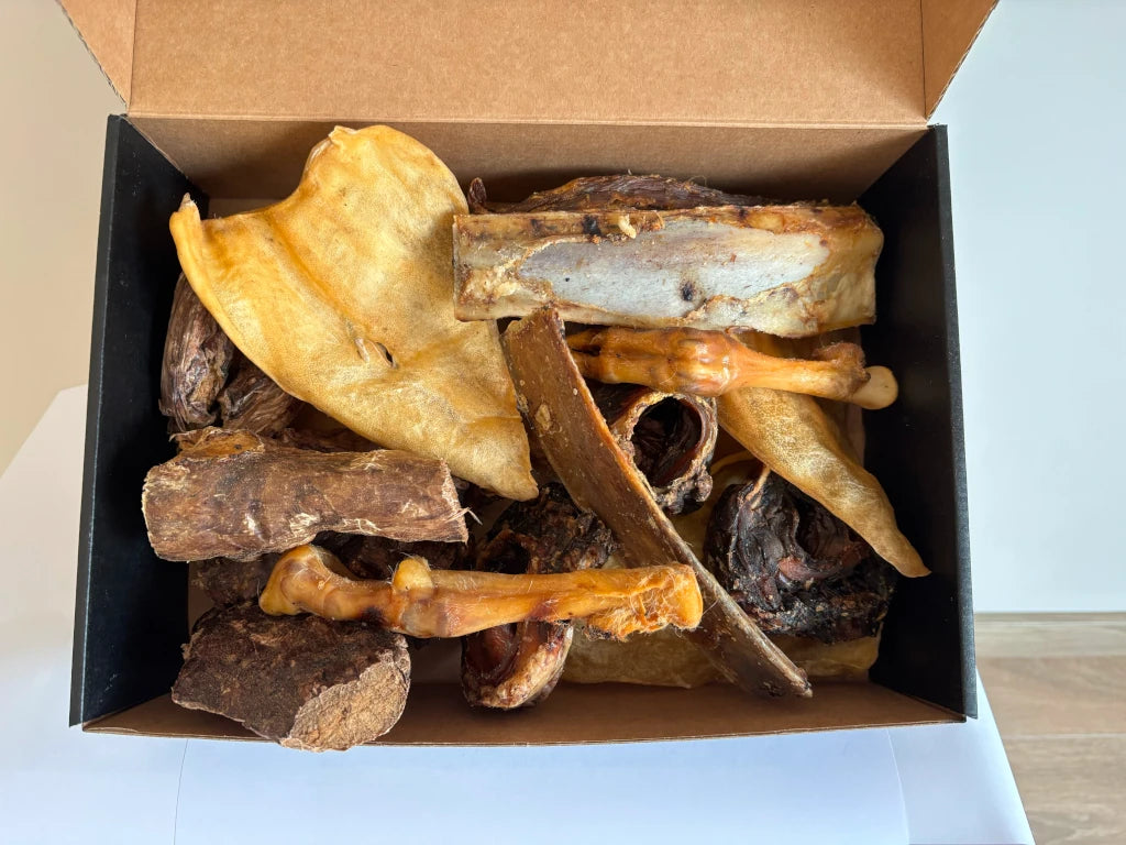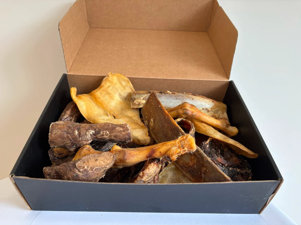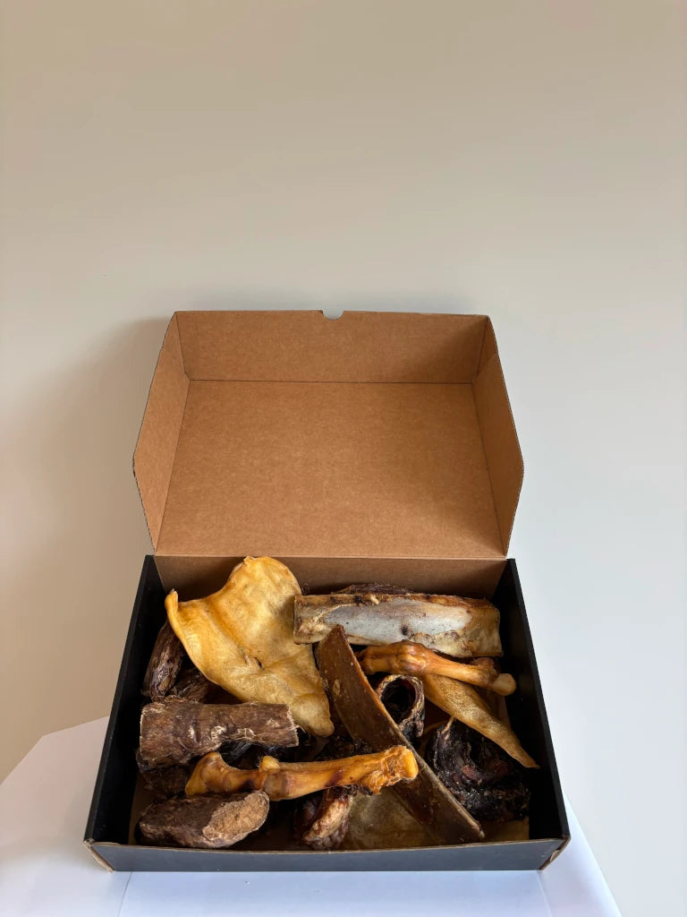 Con Mordiscos Sensibles, tu perro podrá disfrutar de snacks saludables y deliciosos sin comprometer su bienestar. Todos los productos son cuidadosamente seleccionados para evitar alérgenos comunes, lo que hace de esta caja una elección segura y nutritiva para los peludos más delicados.