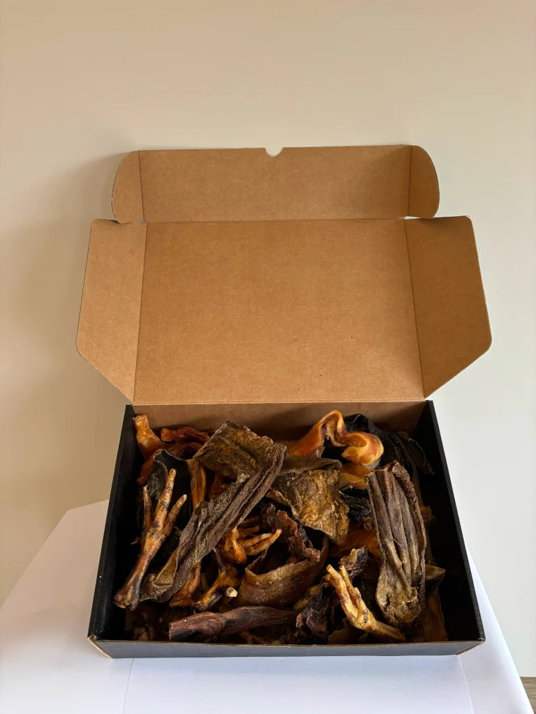 -150 g de tripa de búfalo: Lleno de sabor y beneficios digestivos, este snack es una excelente fuente de fibra natural.