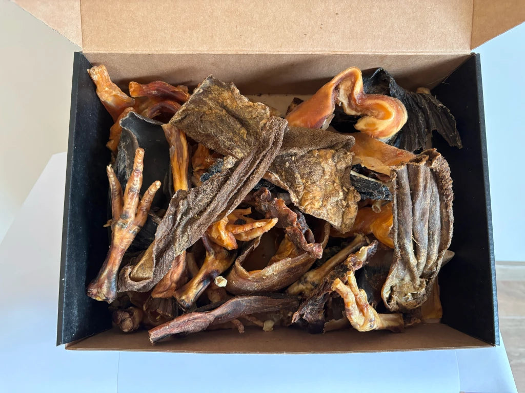 -150 g de patas de pollo: Crujientes y ricas en colágeno, excelentes para la salud de sus huesos y articulaciones.